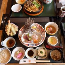 車のキーの電池がなくなったので🪫 修理工場へ すぐ近くの木曽路で籠盛り御膳 寄るつもりがなくてジャージだったのに(笑) 改装して個室間満載だったのでジャージ🆗😆笑笑 セットに追加で茶碗蒸しと🦀蟹ごはん ごちそうさまでした😋