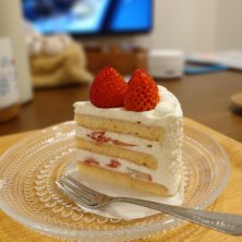 イチゴのショートケーキ(ルージュ) 誕生日をお祝いしたのですが、ケーキを焼く体力がなかったため、気になってたお店のケーキを買ってきました。 クリームにもイチゴの香りがします。美味しかった
