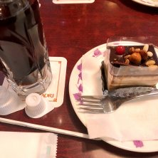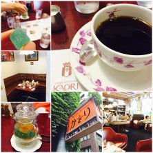 有名店かをり。初めてかも? ちょっと狭いけど、長居できました。今はあんまり本店には力入れてないのかも。(レストランも数年前からお休みしているそうです) ケーキの名前忘れたけどティラミス風だったかな?それとアイスコーヒーのセットです。この生ケーキはジョイナスとかの店舗にあったかなぁ?