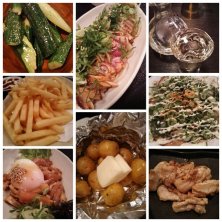 サラダとか たたきとか とん平焼きぽい 鳥平焼きとか 親鶏のなんとか とか なんかいろいろ頼んだんですけど、写真に撮るとあんまり違いがわかりませんね^^; どれもおいしくいただきました(^^)