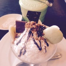 松濤美術館の帰り ホントはセバスチャンに行きたかったんだけど激混みなのわかってるから、テオブロマのかき氷 『ショコラ マスカルポーネandバナーヌ』の小さい方 とりあえずクールダウンできました。 上にかかってるチョコレートがパリパリにならないのはなぜでしょう?(○`〜´○)モグモグ 帰りにセバスチャンの前を通ったら、 最短で2時間半待ちですって( ̄◇ ̄;) マツコデラックス恐るべし(≧∇≦)
