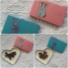 可愛らしい猫ちゃん2匹。 #オランジェット と #アマンドショコラ 。美味しい😋 ・ #パケ買い #猫 #テオブロマ #Theobroma ・ #お取り寄せ #婦人画報のお取り寄せ #チョコレート #chocolate #chocolat #おやつ #オヤツ #instafood #ronron_food_drink_eating_coocking