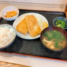 お昼ごはーん(*´∇`*) はんぺんフライ定食 いただく(๑˃̵ᴗ˂̵)