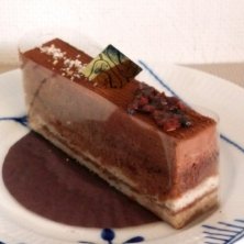 本日のデザートは、 ネグレスコリターンズ♪ で~す(^○^) サクサクの生地の上に、生クリーム、プラリネ、チョコムースと重ねた、チョコレートケーキとなっております。 トップには、クラッシュナッツをちりばめました。 チョコムースに、プラリネと、チョコの風味と食感のコントラストが、素晴らしい逸品となっております。 本日は、コナコーヒーで、頂きます。 それでは、 ボナ・ペティ♪