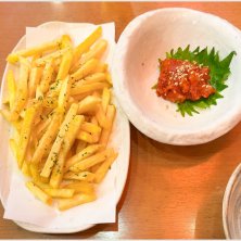 お刺身2点盛りを頼んだ。 色々乗ってる… どれが『2点』なのかわからない。 お魚、うまー♪ (*´∀`*)