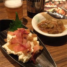 11日の夜。羽田空港からリムジンバスで石神井公園まで来たので、駅前のかまどかに。 先日やってみようと思ったことをやりに帰ってきたぜ( •̀ .̫ •́ ) そいつが出来上がって来るまで、つなぎに燻りがっこ入りの温かいポテトサラダで中瓶をいただく。 この燻りがっこがポテサラによく合うんだな。