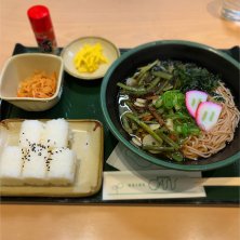 広島5日目 日本海側と違って、毎日晴れ 毎日、1-2時間散歩してる イオンにある軽食&喫茶で、山菜そばセット 両隣から広島弁が聞こえるローカルなお店¥880