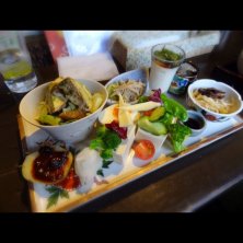 気まぐれランチ(ノ)・ω・(ヾ) 鮭とイワシときのこの 焼きマリネランチ♡*゜ 鶏のお吸い物が絶品! 古民家カフェでまったり。 これからゼクシィフェスタへ。