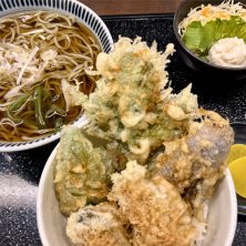野菜天 ざる蕎麦 部活の子どもたちにお弁当を作り、朝からじじばば3人連れて、ドライブです〜♬ 高齢者連れなので、ゆっくり、のんびり、休憩多々(笑) たまたま入ったお蕎麦屋さん、お蕎麦も天ぷらも美味しい꒰ღ˘◡˘ற꒱ しかも、椅子のお座敷個室〜〜♡ みんな大満足です。 道の駅や、直売所で野菜、山菜、苗にお菓子を買い占め、のんびり帰ります〜♬