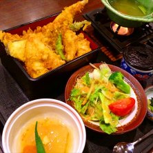 ランチタイムに藍屋でいただきました! 「大判さばの塩焼きと天ぷら御膳」 サバが本当に大きくて、食べ応え充分すぎました😆 天ぷらもあって食べ過ぎてしまいました\(//∇//)\