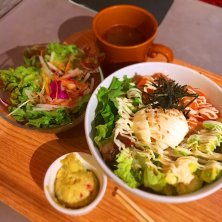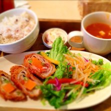 ランチしてきました! 日替わりランチ800円で飲み物付き ご飯は雑穀米でした! メインはチキン南蛮?みたいな感じでしたが衣がクリスピーみたいにサクサクしてて美味しかったです!o(^_^)o