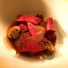 シンシンのロースト。サクッと嚙み切れる、柔らかい。柔らかいのだけど噛むほどに美味しさが広がる。 これをガーリックライスに乗せると豪華ステーキ丼ができる。それがまた美味しすぎてたいへん。