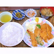 神奈川県川崎市川崎区 川崎市役所と区役所の付近に有る定食やどんぶりなどの店、味のデパート コシバ食堂のミックスフライ定食。 エビフライ、鯵フライ、ロースカツ、コロッケ、メンチカツ、ピーマンのフライにキャベツとマカロニを添えたメインに、御飯、味噌汁、小鉢と漬物がセットになった定食です。 色々なフライが付いていて美味しそうでしたのでこれを食べてみました。800円で意外とボリュームも有りましたし、味も良くて美味しかったです。 この店では色々な定食やどんぶりなどが食べる事が出来るので迷ってしまいます。