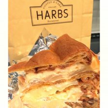 HARBS ランチセット ¥1900 のハーフケーキ バナナクリームパイ 生地にごまが入っているとはこのこと!とわかるくらいちゃんとごまの味がしました。かと言って主張し過ぎず美味しい。クリームは重いのでハーフサイズがちょうどいい。