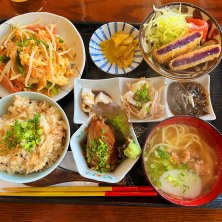 土曜日直の後のランチ🌺 ここは江戸川区小岩の老舗の沖縄料理屋さん 毎晩のように沖縄民謡やアーティストのライブがあります。沖縄から出てきたアーティストの登竜門だったり、支援もしているお店(^-^) コロナ禍でライブも限られて、前のような賑わいは(*_*) 八重山そばとニジュウマル丼のセットが一番人気だそうです♪グラスビールもつけました🍺
