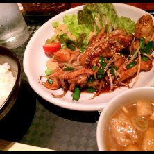 初のお店。 日替わりの鶏焼肉定食。 鶏屋さんだけあって美味しかった。これで¥500 お得やね。