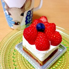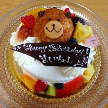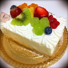 バースデーケーキ フロマージュ クリュ パッションフルーツのバタークリームと、上には、生クリームとフルーツが飾られたレアチーズケーキ。 気持ちが嬉しい(^^) 2016.04.12 D