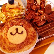 クマがトレードマーク?なケーキ屋さんです! 先週通っていたラーメン屋の近所にありました(^^) 前方シュークリーム、チョコ、ブリュレ風パイ系。どれもクリスピー感あって美味しかった~!