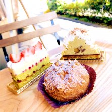 シュークリーム 和栗のモンブラン トリコローレ テイクアウトするつもりでしたが、外にテーブルがあったので食べさせて貰いました(ᵒ̴̷͈ᗨᵒ̴̶̷͈ )✧ どれも甘さ控えめの大人味!! トリコローレはピスタチオ感がしっかりしててとても美味しかったです!!