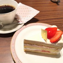 神戸風月堂本店のレストランで、 いちごのショートケーキ、石窯コーヒー(ゴーフルつき) 元町商店街の中にある風月堂のレストラン。いちごのショートケーキもコーヒーもめちゃめちゃ美味しかったです♡コーヒーを注文するとゴーフルがついてくるのがまた嬉しい♡