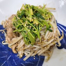 ⭕️ピリ辛豆苗豚バラ炒め⭕️ 豆苗はピリ辛のナムル的な感じで作り ゆずの汁と柚子皮も入れさっぱり仕上げにして 豚バラともやしは塩コショウで軽く味付けして 豆苗をのせて混ぜて食べていただくスタイル