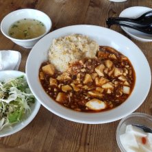 本日のおでかけランチ 🦐エビチリソース 定食 900円 卵スープ 🍚 サラダ 杏仁豆腐つき 夏はお盆のお祭りに合わせて門仲のお寺に参拝するけど台風だったし、なんやかんやで見合せてて本日お参り🙏 割りと空いてた(当たり前か)