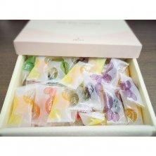 ある日のおやつ いただきものの、 彩果の宝石 フルーツ🍑🍇🍋🍊🍌🍎🍓の形をした、 可愛いお菓子です💕