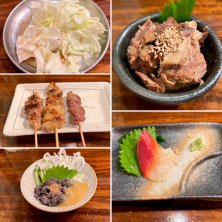 1軒目です。 お通しのキャベツ LINEのお友達登録で焼き鳥3本サービス センマイ刺し マグロのしぐれ煮 10円刺身のホッキ貝 久しぶりにセンマイ刺し食べた。