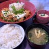 前述の 「ランチパスポート」で やはりこちらもワンコインで 頂けます。 とんかつ屋さんの カツ丼。 生卵も載っかってます。 キャベツ、お漬物 お味噌汁お代わり 自由。 今日のお味噌汁の具材には あおさが入ってました。 満腹になります。 これ以外にも、 「姫ランチ」 (ヒレカツ、串カツ、海老フライ) のセットもランパスの 対象です。 ヾ(@⌒ー⌒@)ノ