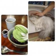 甘味処でひと休み〜(^^) 今日は幼稚園の時のママ友と久しぶりの再会(*^^*) 銀ブラの後、おかめで蔵王ソフトをいただきました♡ お上品な甘みでパクパク一気に食べちゃったo(^_^)o