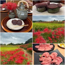 奈良ごはん♡ チェックアウト後、名古屋にひつまぶしを食べに行く予定でしたが、みんな朝食をビックリするくらい食べる😳 なのでランチはキャンセル。 プラン変更して彼岸花を見に行ってきました♡ その前に…、花より団子!!ってくらい、ここの蓬餅が大好きな私。ランチ代わりに中将餅とお茶のセット♡ よもぎ餅が柔らかくて餡がまた最高!! その後、田園の中に咲いてる彼岸花を楽しみました♡ (まだ蕾も多くて満開はまだ先のようです) 夜はみんなで焼肉♡ 帰宅後は購入したおはぎ2つペロリ。餡子ラブ♡