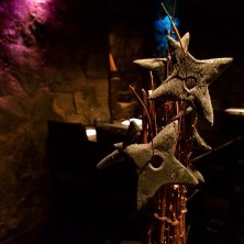 忍者赤坂♬ニンニン 店内へ入ると頭上から忍者登場!! 忍者が席へ案内してくれて、店内はカラクリ だらけ!! 1時間位するとイケメン忍者が入ってきて 手品を披露♬(目の前で見ているのに見抜けないすご技) 拍手しまくり(๑´ω`ノノ゙✧ 【くのいち】コース確か9品! パフォーマンス、創作料理満点のお店★★★★★