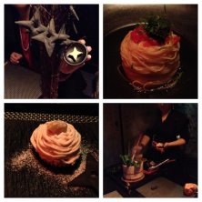 オーストラリアからのお客さんと忍者レストランへ。 忍者屋敷のアトラクションで着席後は、手裏剣グリッシーニ、卵がうずら肉に化けたり、導火線伝って燃えるサザエ、盆栽デザート等、いろんな仕掛けで盛り上がり、上級忍者のマジックにも惹きつけられ、楽しんでもらえたようです。 アミューズメントレストランと思って期待してなかったけど、一つ一つがちゃんと美味しかったので安心した。 2軒目は六本木のCLUBへ。そこも混み混みなので、最後は「seafoodBBQ」と騙くらかして磯丸で〆( ´艸`)