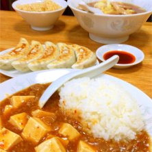 大好きな彼と夜遅〜い夕飯デイツ♡ 彼がオススメの珍来の餃子(*´艸`*) 野菜いっぱい餃子で美味しかった! 麻婆丼も美味しかった♪