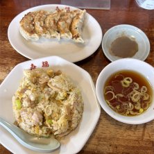 本日のランチは餃チャー。 見るといつも並んでいるお店だが、今日はすぐ入れそう! 一度通り過ぎかけたものの、「行くなら今」とinしてみました。 なるほど、チャーシューやメンマがゴロゴロと入ったチャーハンは優しい味でいくらでも食べられそう。 餃子は薄めの皮に餡がぎっしり詰まったジューシーなタイプ。これまた美味しい。 チャンスがあれば、また行きたいお店でした👍