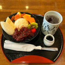 美術館で3時間歩いた後ちょい移動して「冷やしぜんざい」680円!茶碗大きくて焦ったけど、氷で上げ底してたので適量でした。白玉もちもちであんこもアイスも甘過ぎず、美味しかったです。