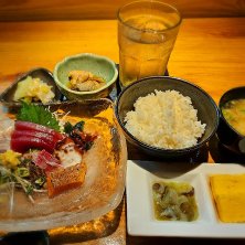 図書館巡りして60分もみほぐされて、予定していた温泉の時間に間に合わなくて、別の温泉に向かう途中の居酒屋に吸い込まれ…「夜の定食」1,500円!美味しかったです。