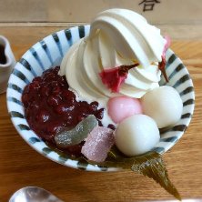 本日の甘いもの 期間限定 🌸桜あんみつ 1090円 まるで梅雨の走りの様な今日、 気温が高いし☔️だから湿度も高い。 ソフトクリームみたいなの欲する気候😋