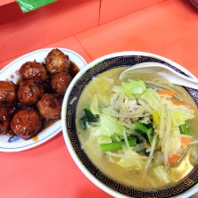 東急線ワンデーパス② 蒲田の超有名な町中華で タンメンと、名物 肉団子(小) どうしても肉団子は食べたかったけど、小でも8個ある!ビールも頼んでたら食べきれなかった〜😅 カウンターに案内され、着丼まで45分も待たされたけど、カンニング竹山に超激似の有名マスターの調理を目の前でじっくり観察w