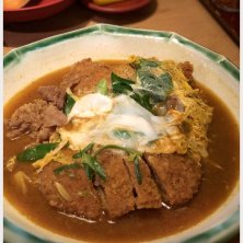 ・カレーうどん やきぶた、おもちトッピング 地元でよく並んでる人がいるお店に行ってきました。カツカレーが定番の人気メニューみたいでしたが、うどんが食べたい気分だったので。 お出汁のよく効いた和風の味で、かなりとろみが強かったです。全然冷めないので猫舌の私はなかなか箸が進められず(笑) カレーにはもともと牛肉が入っていたのですが、欲張って焼き豚も追加しちゃいました!おもちは焼きたてでお煎餅のような香ばしさ♪熱いけど美味しかったです。