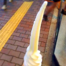 先の長〜い巻き上げが有名な ソフトクリームではない 生アイスを食べに 渋谷公園通りを上がりきった 区役所前の「白一」へ 牛乳こだわり生アイスを コーンカップタイプ ¥390 税込 見た目はソフトクリームなので 知らないで食べると 食感にビックリ その意外性とビジュアルが 楽しめるアイス どうやって巻き上げるかは 見えないようになっていて 2分程待たされる