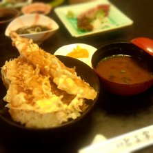 お昼ご飯は別府で特上天丼でした(*^O^*)! 衣がサックサクの大きな海老を開いた天ぷらが特製タレと絡んで凄く美味しかったです( ´△`)♪ 海老を更に一尾追加して、これで750円とはホント驚きました(゜_゜;)♪