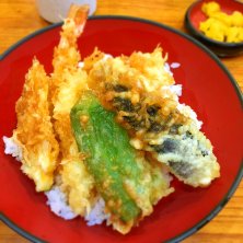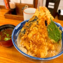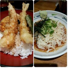 海老が無性に食べたくなって、出張に出発する前に。 天丼ミニ麺セット