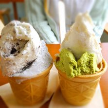 昨日の続き♪ ミルクパレット牧場の絞りたての牛乳で作ったジェラートのお店へ♪ 黒蜜きなことラズベリーヨーグルトのアイスをトッピングゥ~(^o^) 焼いて食べるチーズ『カチョカバロ』買ってみました♪ ひょうたんのような?馬の鞍に縛り付けた袋に似てるので、カチョ(馬)カバロ(鞍)と名付けたみたいで面白い名前です(*^^*) 食べるの楽しみだなぁ~♪