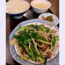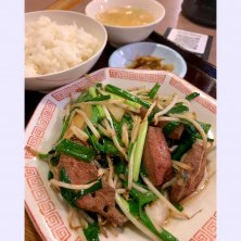 日替わりB定食、レバニラ炒め、700円。 本格的に暑くなってきたのでレバニラにしました。 夏といえばレバニラ。 レバニラの何がいいかというと、私の場合、レバーよりニラなんです。ニラが大好きなんです。 レバニラかニラレバかという呼称問題については、私も『天才バカボン』世代なんでレバニラの方が馴染みがあるんですが、やはりニラを優先したいので、最近はニラレバと呼ぶようにしています。