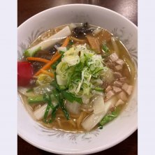 五目ラーメンの塩、850円。 五目ラーメンや野菜ラーメンは塩味が好みです。 あっさり、かつキレのある昔風のスープで、白菜や玉ねぎ、ニラなどの野菜の味が引き立ちます。 細かく刻んだチャーシューがスープの底に結構たくさん沈んでるので、残らず掬い取っているうちに、ほぼスープを飲み干してしまいました。 罪な刻みチャーシューw
