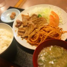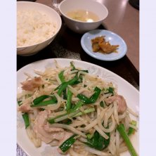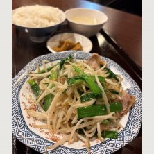 月曜日の日替わり定食。 豚もやし定食、750円。 豚バラ肉とニラともやしの素敵な関係。