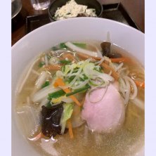 ランチCセット、800円。 塩ラーメン+ミニチャーマヨ丼。 スープはあっさり、昔ながらの昭和の味に若干胡麻油の風味。麺はつるやわ麺。