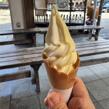 錦帯橋近くのアイスクリーム屋戦争の片割れで、焦がしキャラメル! うまーい!
