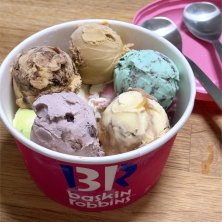 これだけあるんですね~でも、結局は定番を食べてしまった😵💦 個人的ナンバーワンは、ナッツトゥーユーですが、誰も食べてる痕跡がなく😅 まっ平らなアイスにお姉さんがほじりながら丸くしてました🍨